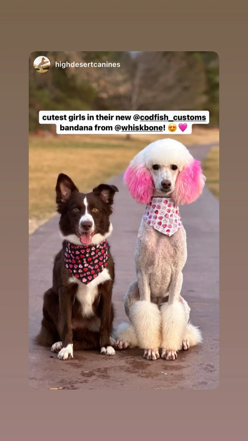 Our handmade, long-lasting bandanas are fully reversible—featuring a bold cotton print on one side and durable upcycled denim on the other. Perfect for pups who love to explore in style, these bandanas are as versatile as they are eco-friendly. -